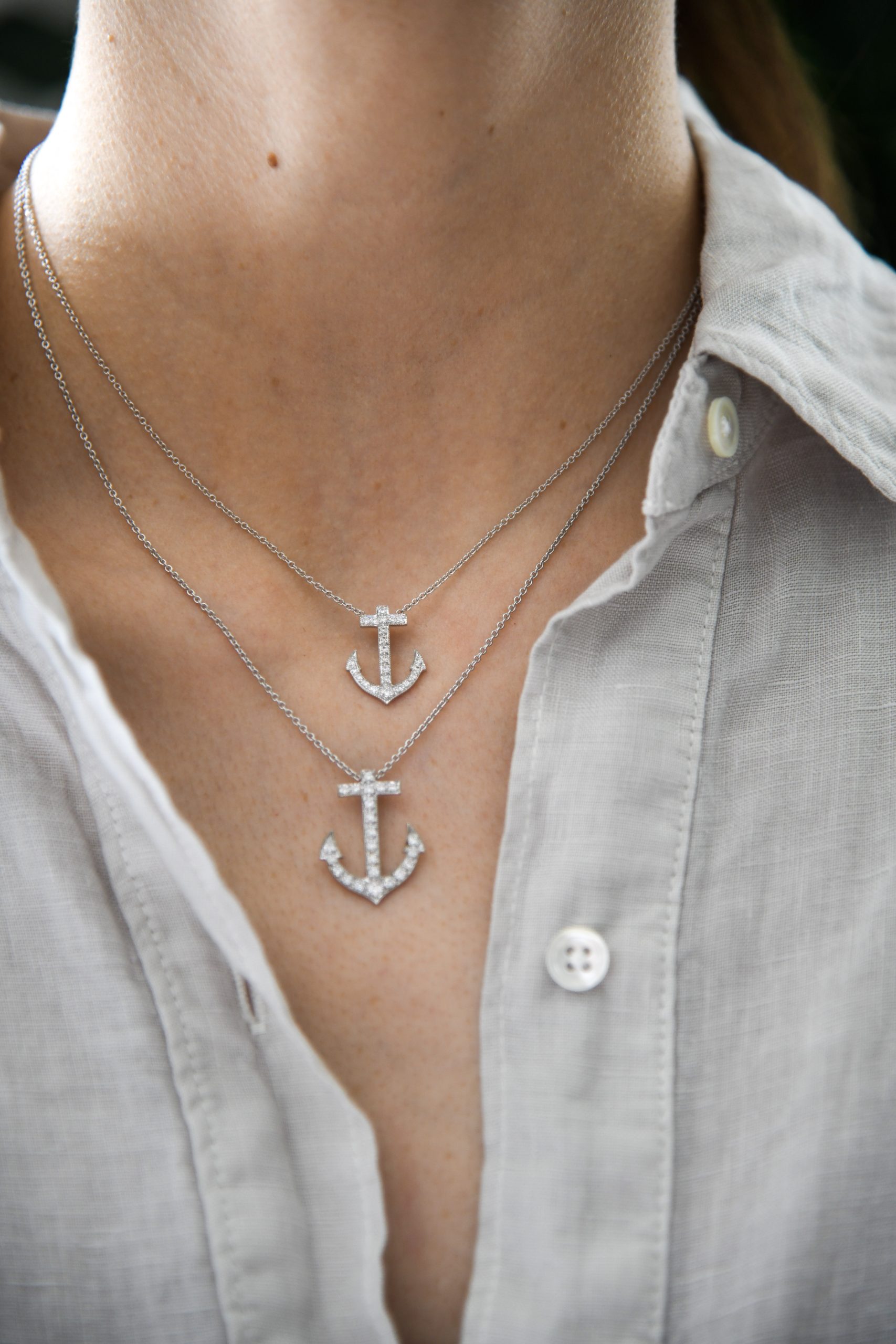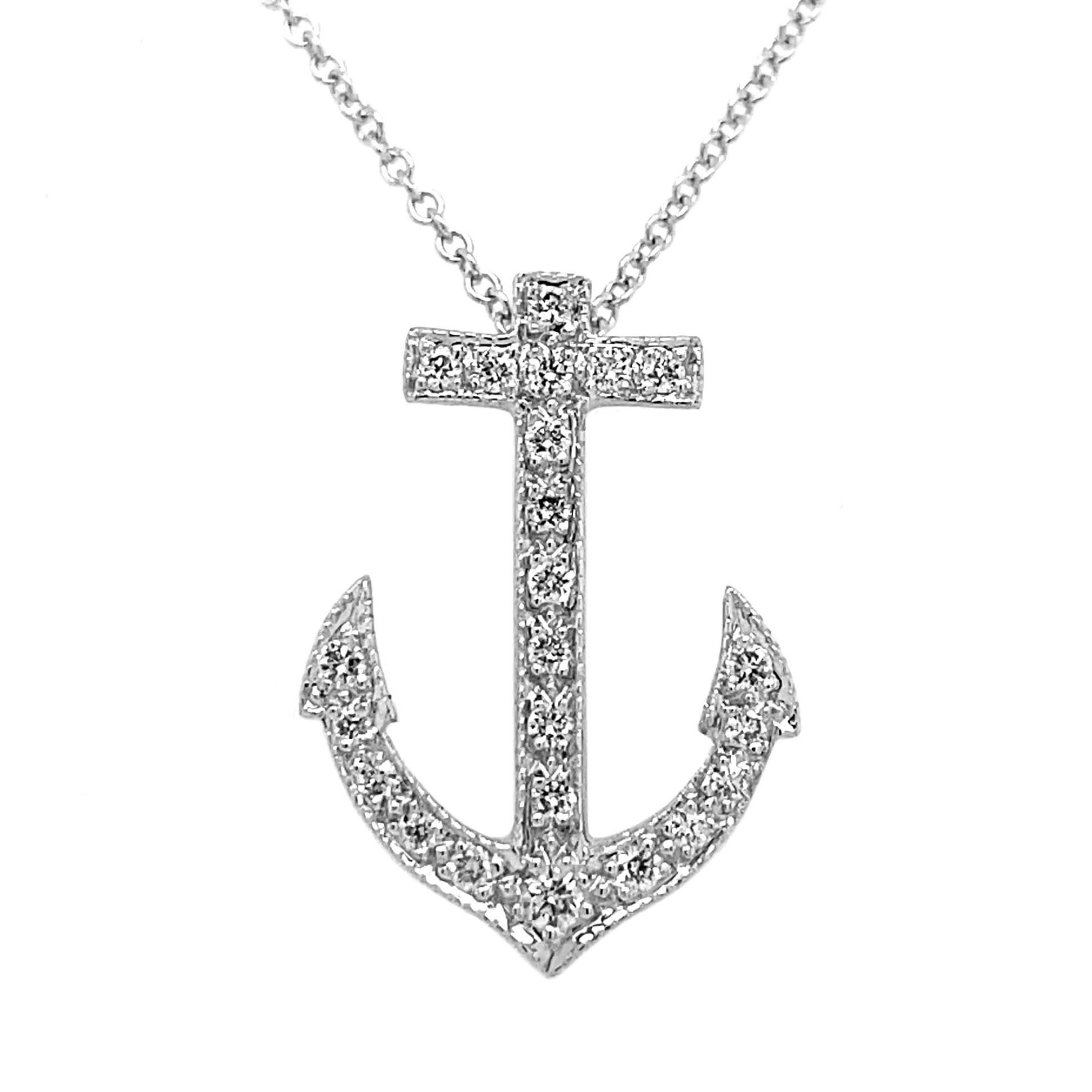 14kt White Gold Diamond Anchor Pendants available in two different sizes