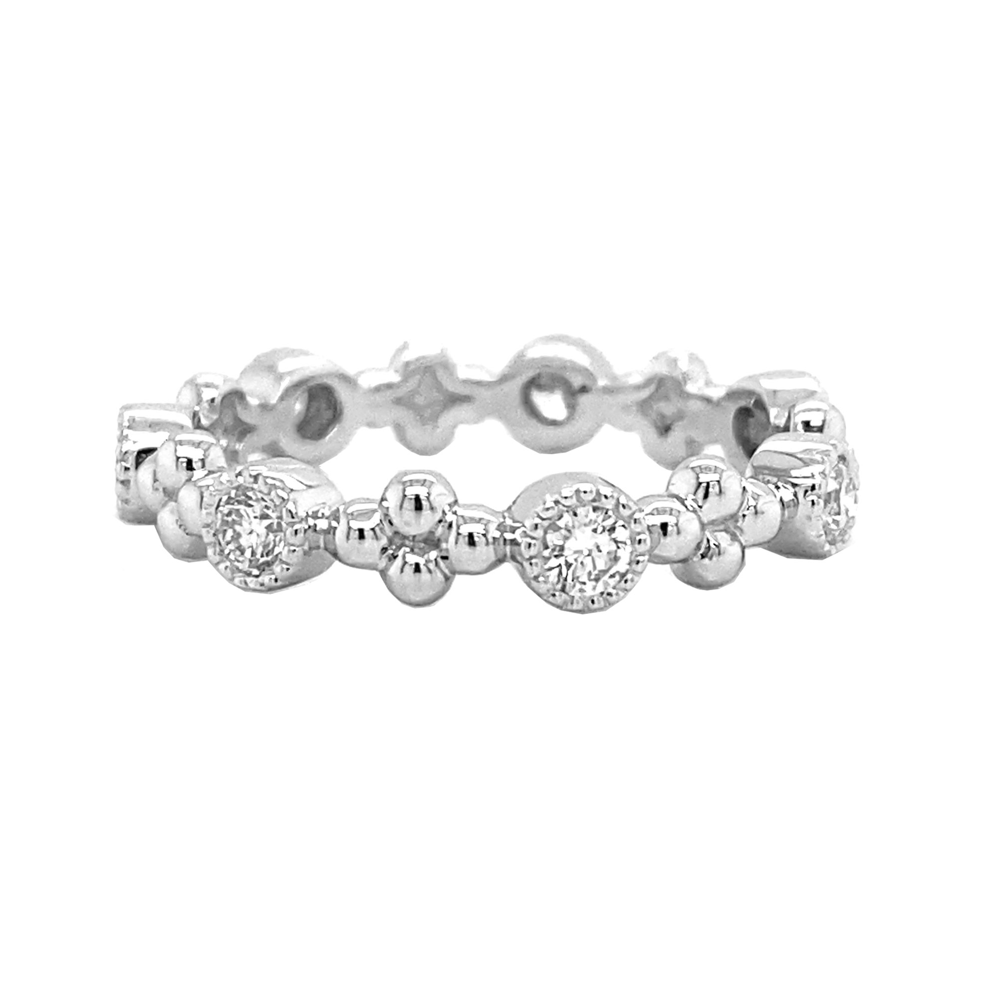 14kt White Gold Milgrain Bezel Set Clover Diamond Eternity Band