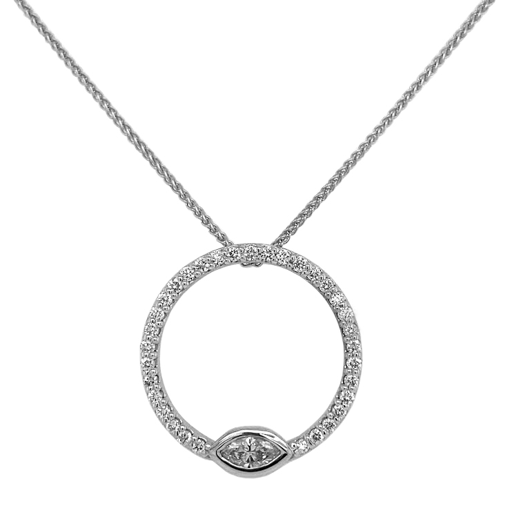 14kt White Gold Bezel Set Marquise Diamond Evil Eye Circle Pendant