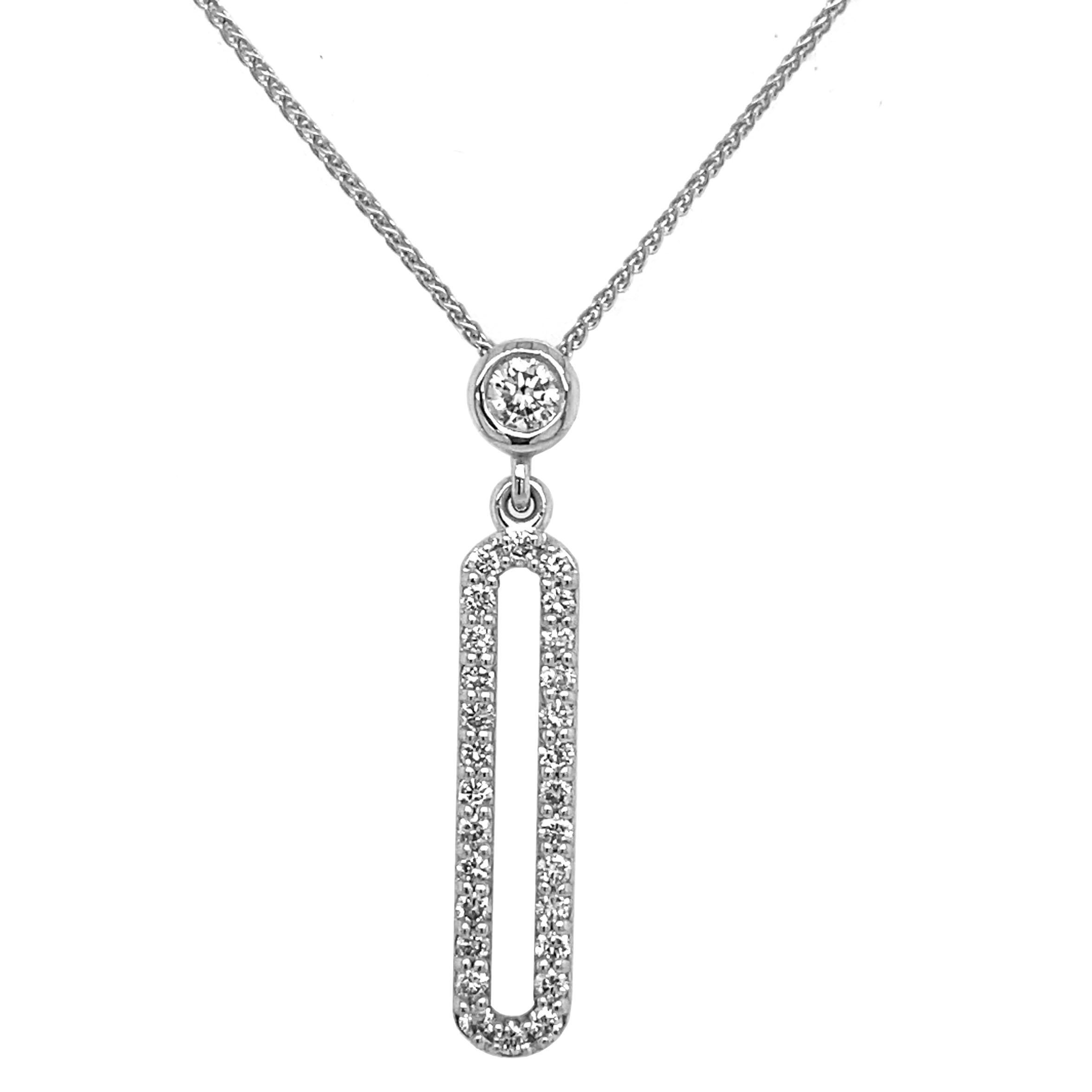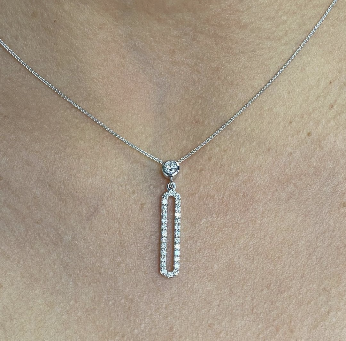 14kt White Gold Diamond Bar and Paper Clip Pendant