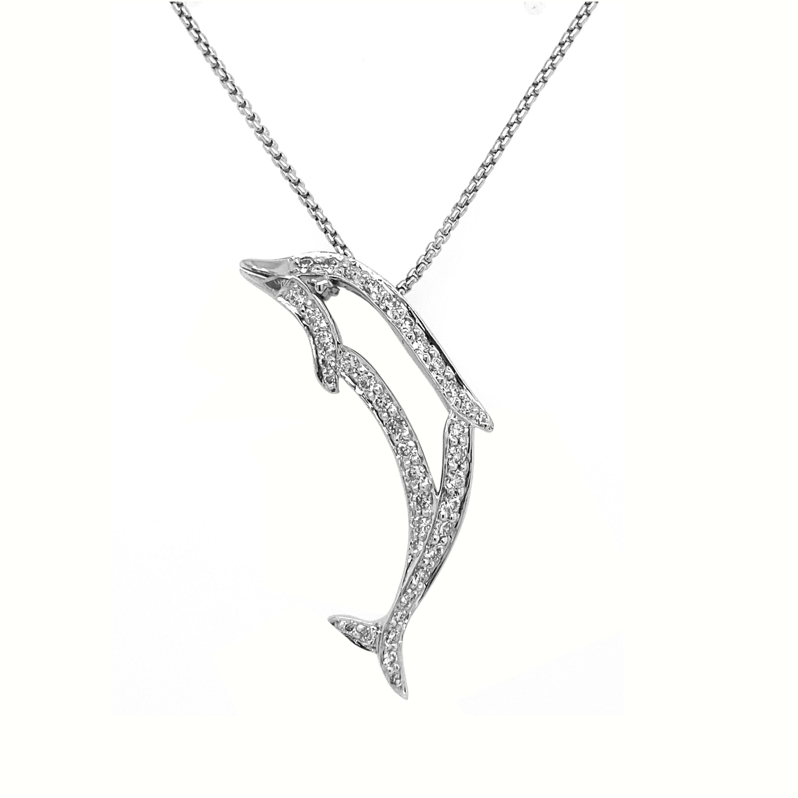 14kt White Gold Diamond Dolphin Pendant