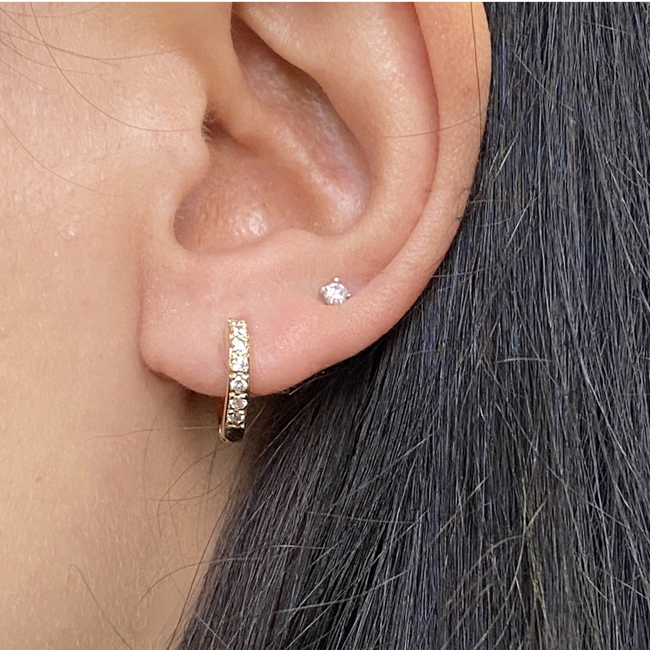 14kt Yellow Gold Heart Shape Petite Diamond Hoop Earrings
