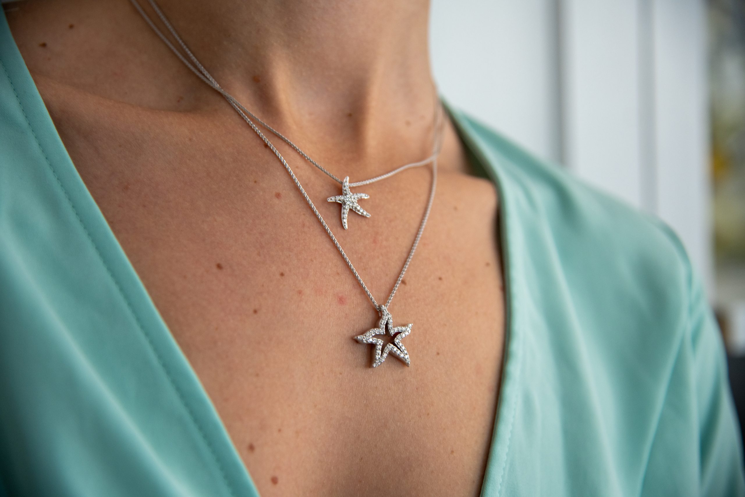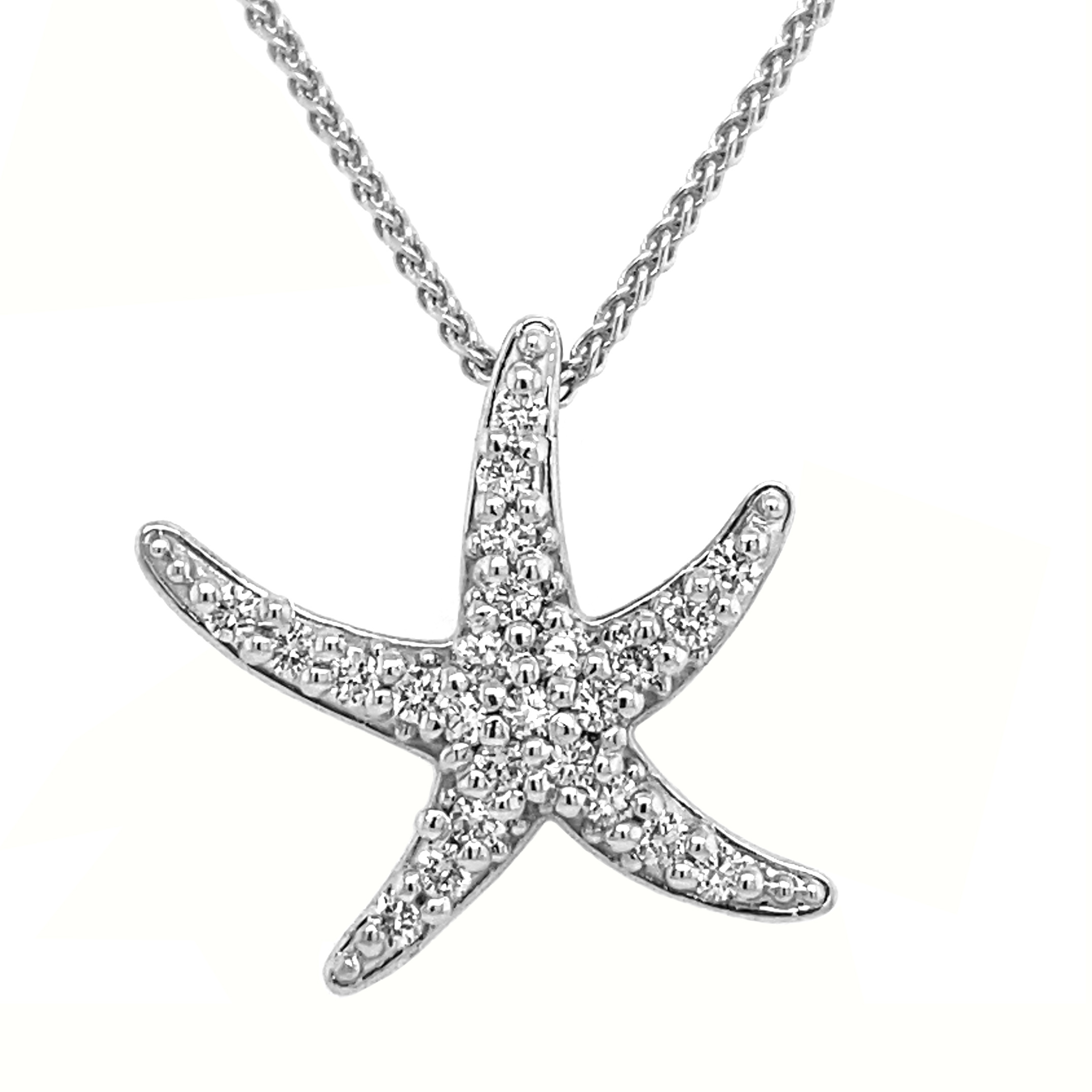 14kt White Gold Diamond Star Fish Pendant