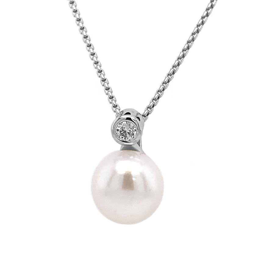 18kt White Gold Fresh Water Pearl and Diamond Pendant