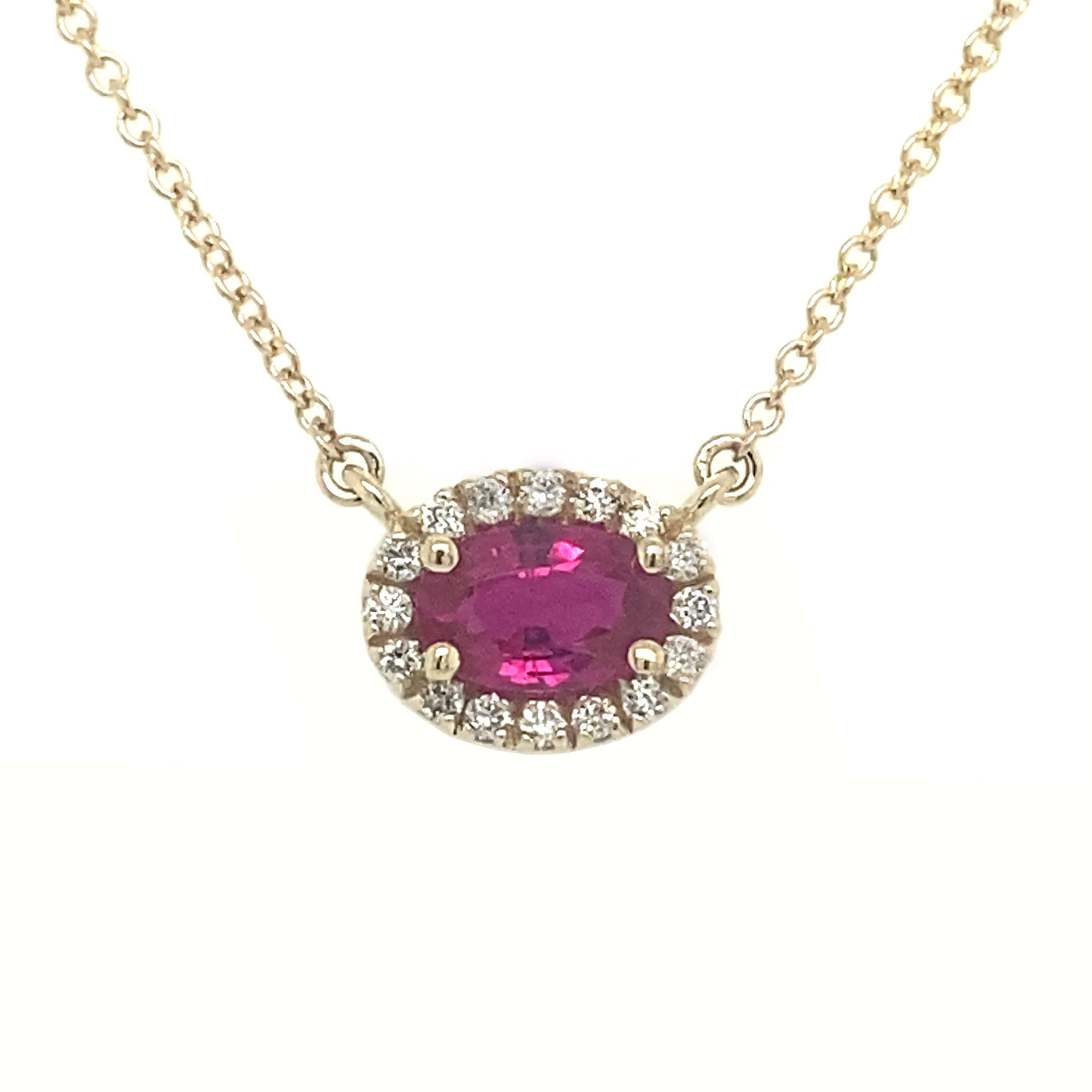 14kt Yellow Gold Halo Oval Ruby and Diamond Pendant