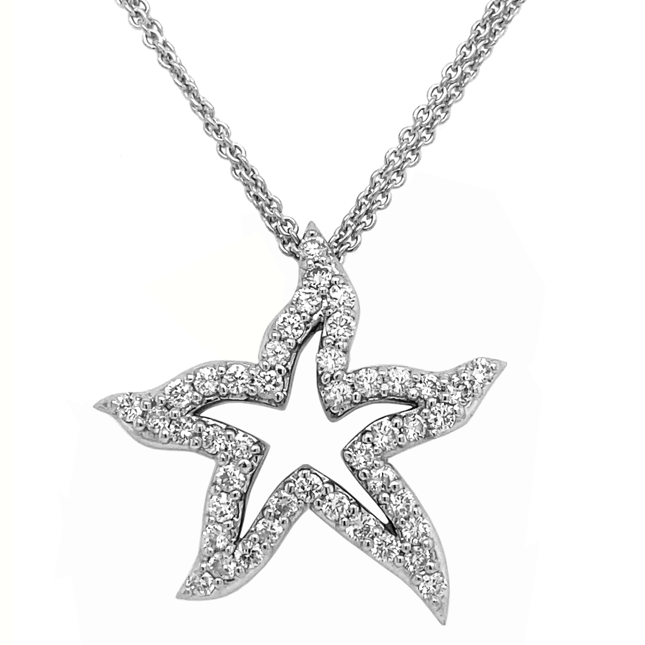 14kt White Gold Open Center Diamond Star Fish Pendant