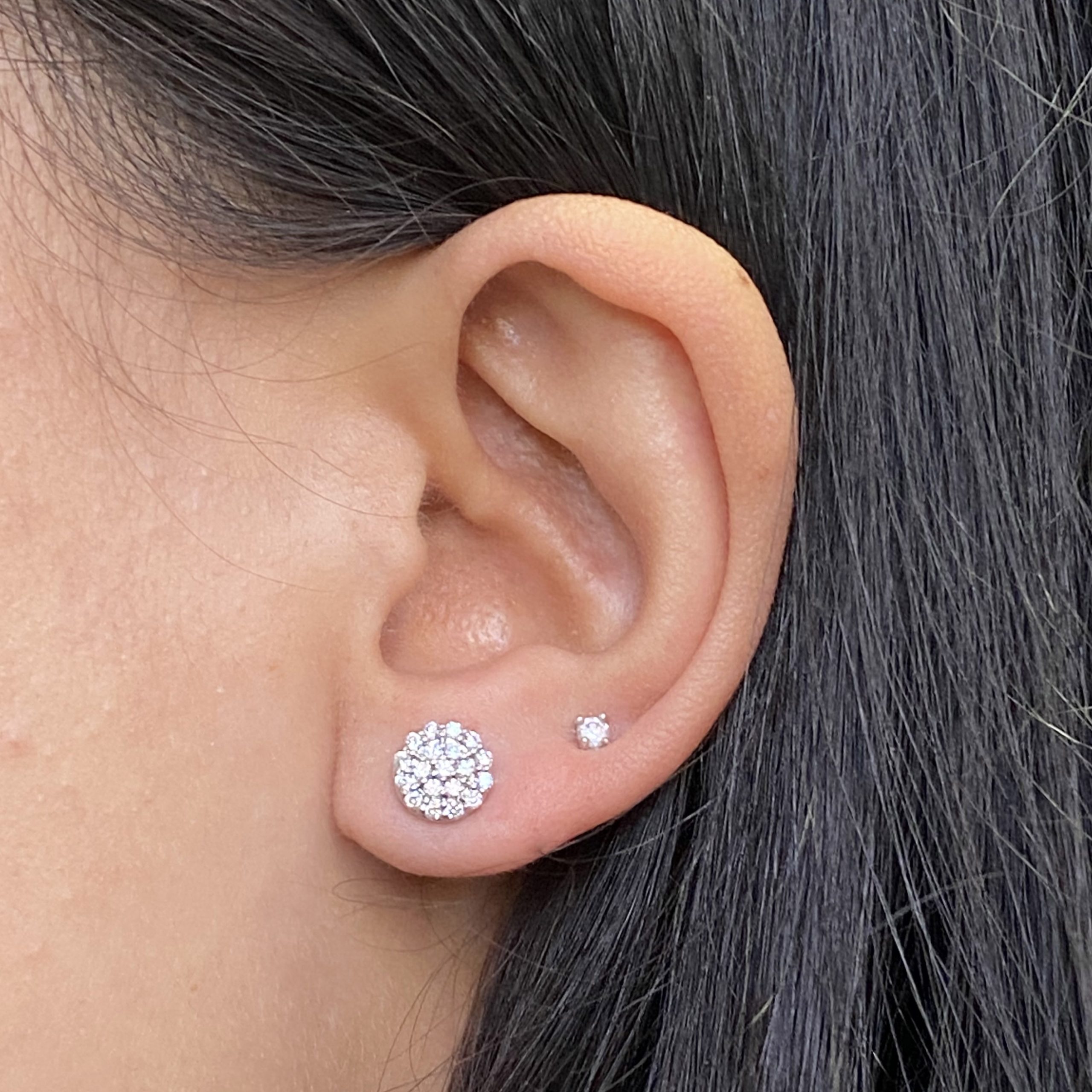 14kt White Gold, Pave Set Round Diamond Stud Earrings
