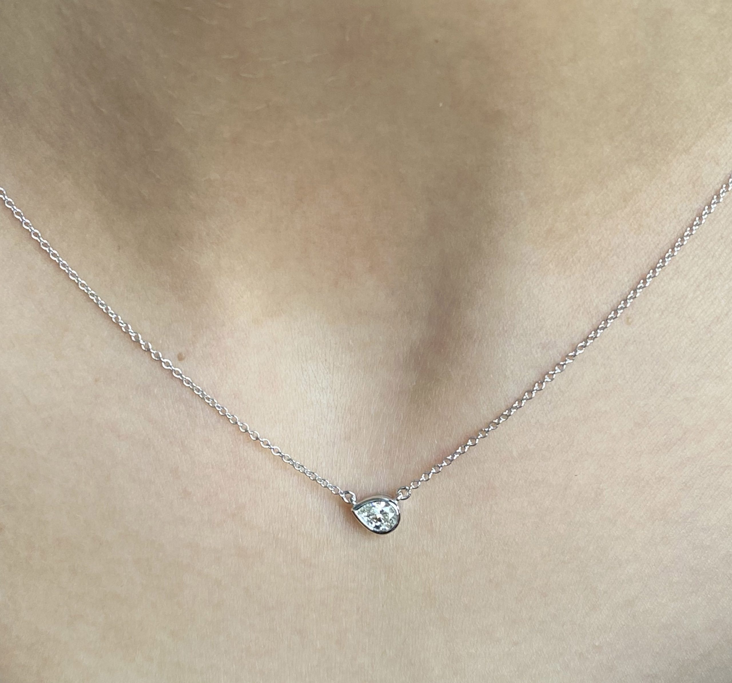 14kt White Gold Bezel Set Pear Shape Diamond Pendant