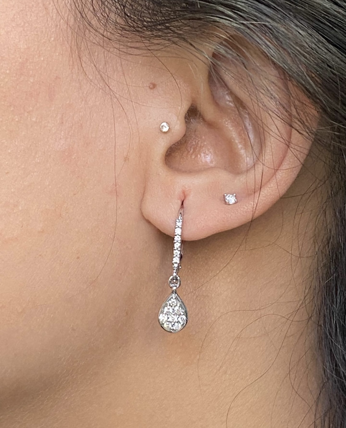 Diamond Pear Shape Cluster Drop Earrings