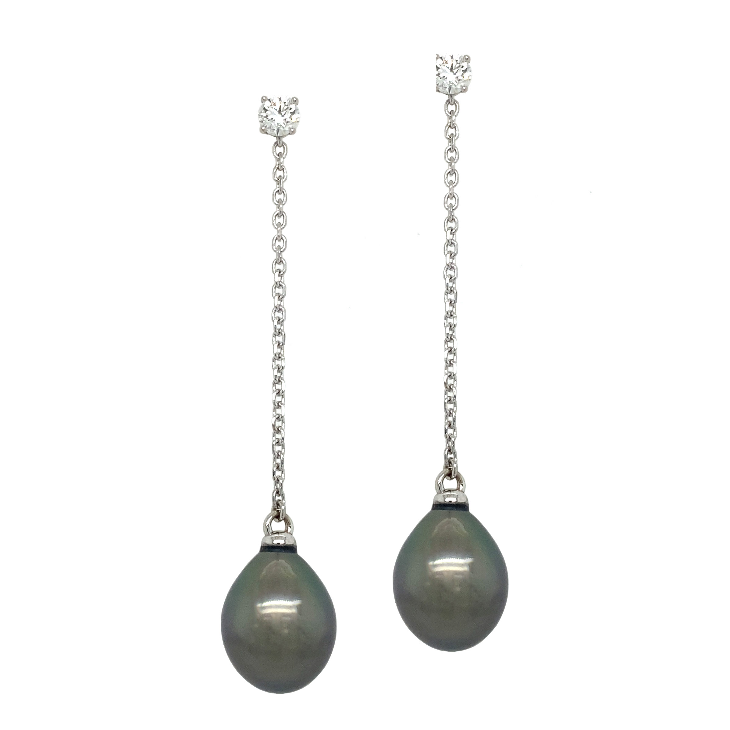 14kt White Gold Pear Shape Tahitian Pearl Dangle Earrings