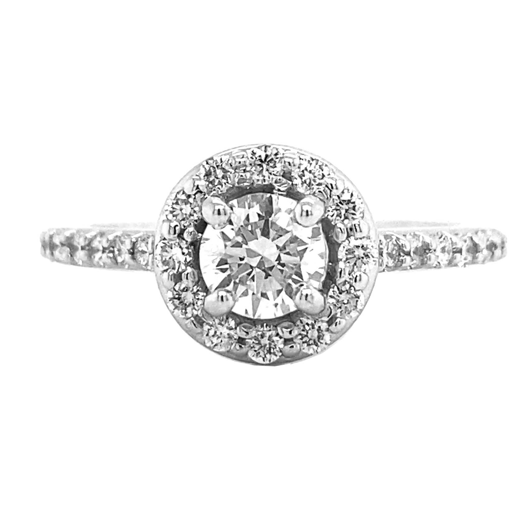 14kt White Gold Prong Set Round Halo Diamond Engagement Ring