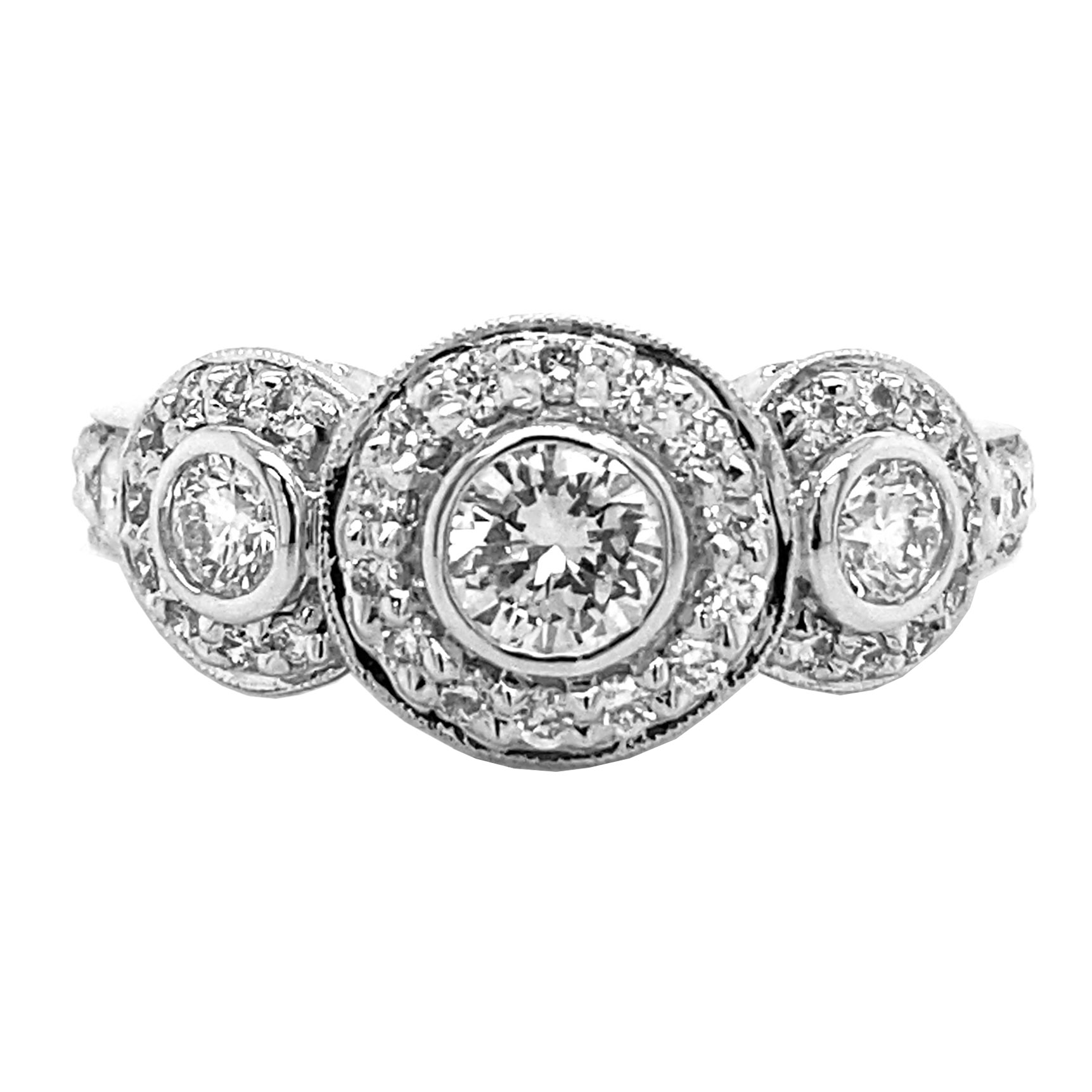 Three Stone Halo Diamond Ring